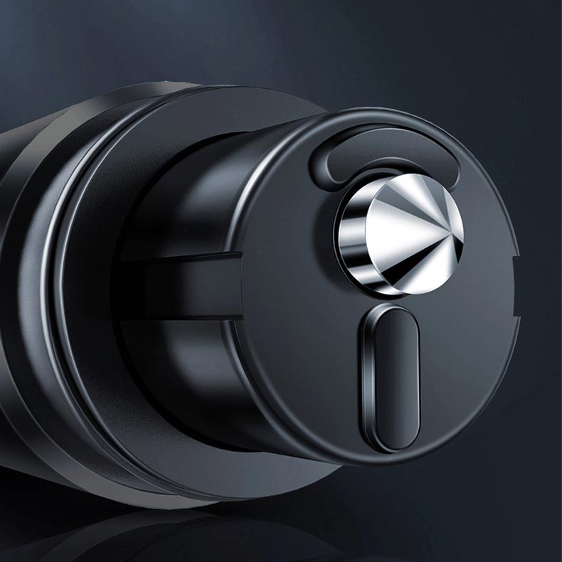 Flüchte im Handumdrehen! Dieser Notfallhammer ist dein schneller Weg zur Sicherheit. In einer Krise, stelle dir vor, du bist im Auto eingesperrt und die Fenster geben einfach nicht nach. Wenn ein Notfall eintritt, greife diesen Hammer fest in die Hand und drücke ihn mit einem einzigen, kraftvollen Stoß gegen das Autofenster. Dank seiner eingebauten Hochdruckfeder zerspringt das Glas sofort und bietet eine schnelle Fluchtmöglichkeit.