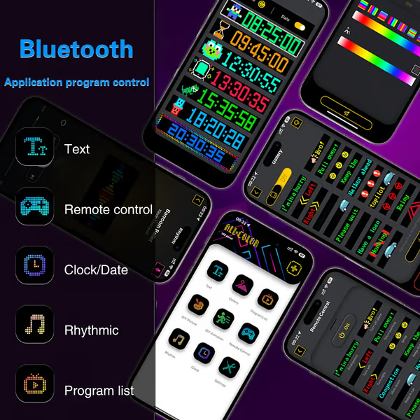 Das LED-Schild wird über eine via Bluetooth verbundene App gesteuert, die den gleichzeitigen Anschluss mehrerer LED-Displays ermöglicht und Ihr Geschäft so attraktiver macht. Die App bietet zahlreiche interessante Modi und Animationen. Mit Ihrem Smartphone können Sie ganz einfach Vorlagen und ansprechende Texte anpassen und Ihr Geschäft so individuell gestalten.