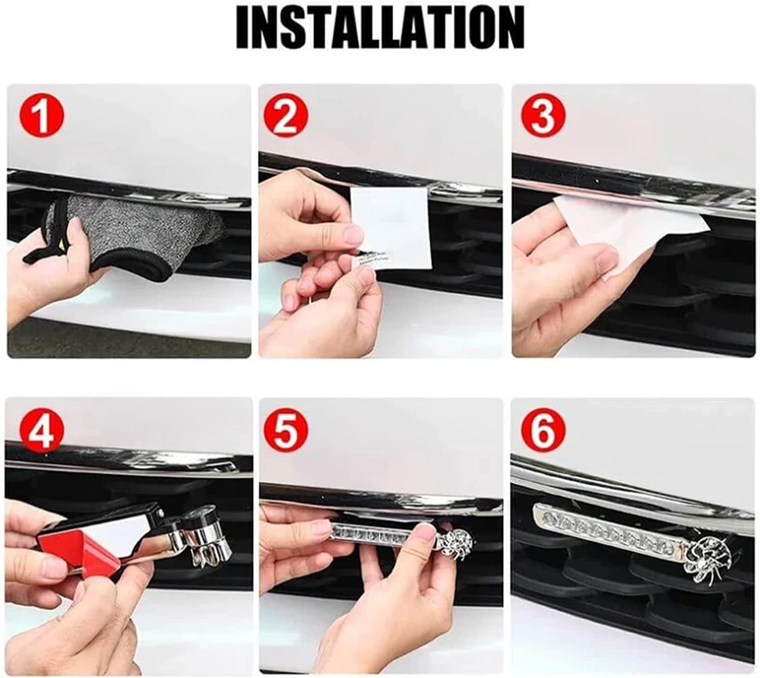 Einfache Installation: Die Installation erfolgt ohne Verkabelung und ist selbstklebend. Reinigen und trocknen Sie zunächst das vordere Mittelnetz. Ziehen Sie dann die Schutzfolie von der Halterung ab, kleben Sie diese auf das Mittelnetz und drücken Sie sie fest an. Die Halterung ist um 180 Grad verstellbar und kann somit an Ihre Bedürfnisse angepasst werden.
