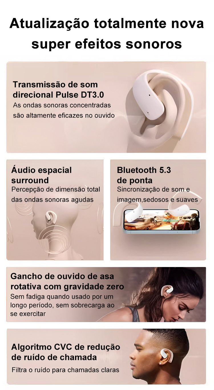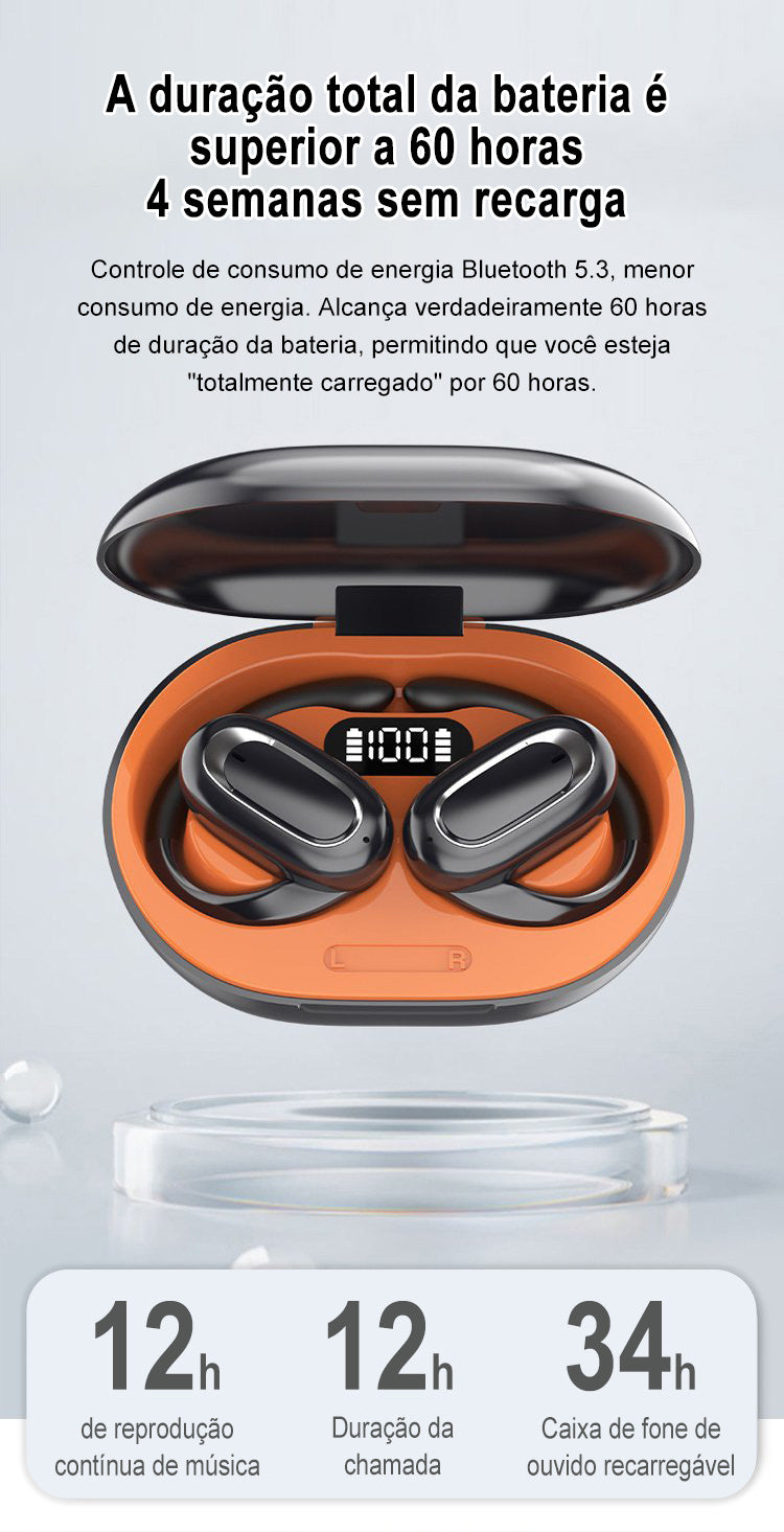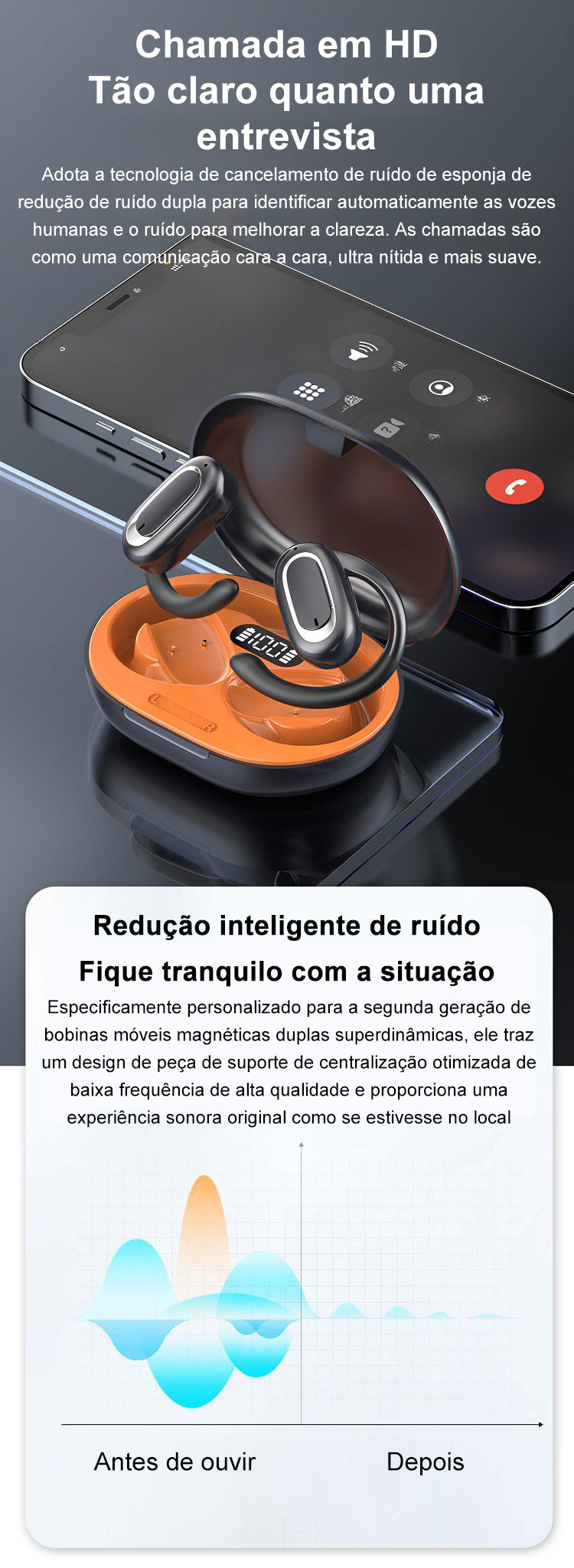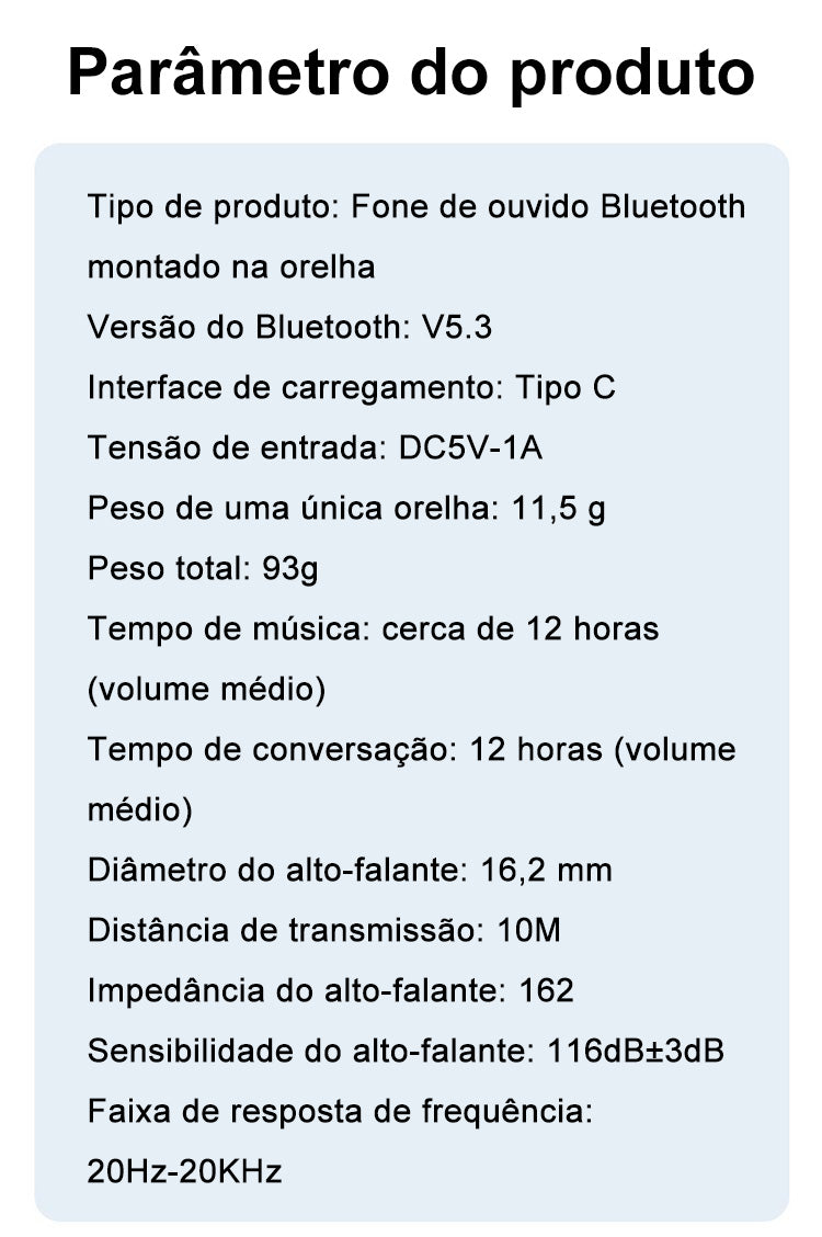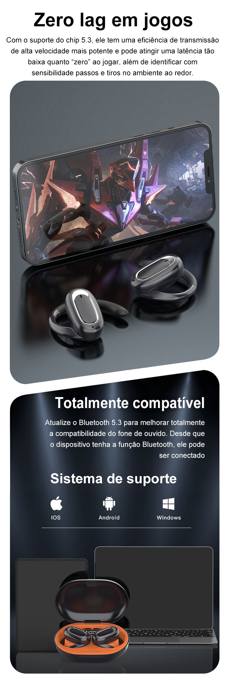 Fone de Ouvido Bluetooth Sem Fio para Pendurar na Orelha